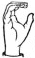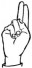 На ћирилици написано КОНСТАНТИН УЛЕМЕК састоји се из 16 слова [?]. Исписано ћириличном једноручном азбуком за глувонеме: